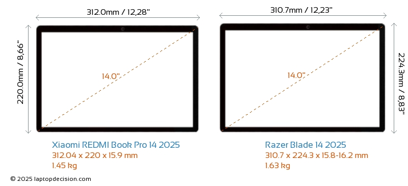 Thunderbolt REDMI Book Pro 14 2025 est équipé d'un port Thunderbolt 4. Blade 14 2025 n'a pas de port Thunderbolt.