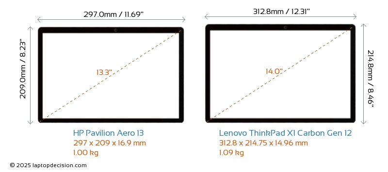 HDMIどちらの Pavilion Aero 13 と ThinkPad X1 Carbon Gen 12 も HDMI ポートを備えています。 Pavilion Aero 13 は 1x HDMI 2.0 を提供し、 ThinkPad X1 Carbon Gen 12 は 1x HDMI 2.1 を提供します。