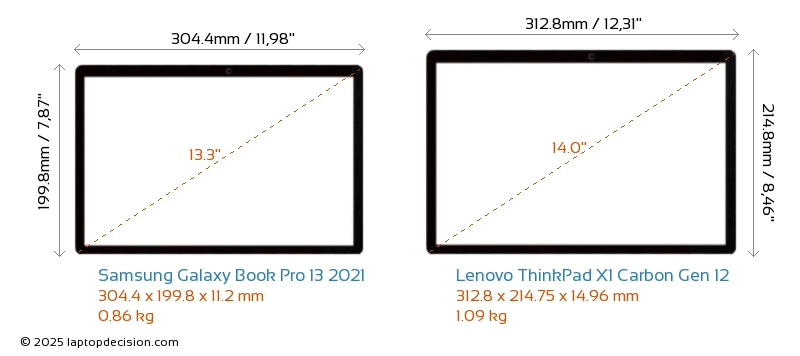 Thunderbolt両方の Galaxy Book Pro 13 2021 と ThinkPad X1 Carbon Gen 12 は Thunderbolt 4 ポートを備えています。