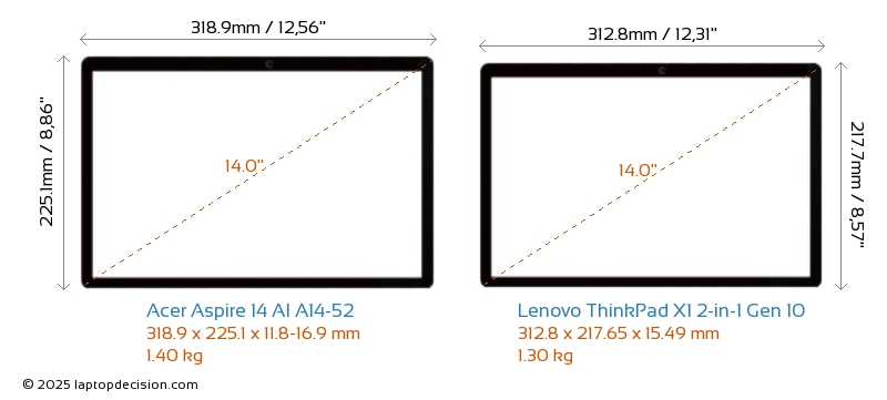 Thunderbolt両方の Aspire 14 AI A14-52 と ThinkPad X1 2-in-1 Gen 10 は Thunderbolt 4 ポートを備えています。