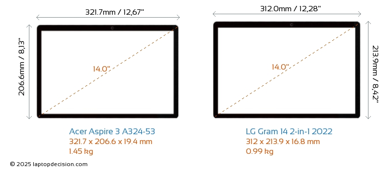 HDMIどちらの Aspire 3 A324-53 と Gram 14 2-in-1 2022 も HDMI ポートを備えています。 Aspire 3 A324-53 は 1x HDMI 1.4 を提供し、Gram 14 2-in-1 2022 は 1x HDMI 2.0 を提供します。