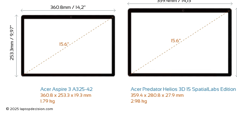 HDMIどちらの Aspire 3 A325-42 と Predator Helios 3D 15 SpatialLabs Edition も HDMI ポートを備えています。 Aspire 3 A325-42 は 1x HDMI 1.4 を提供し、 Predator Helios 3D 15 SpatialLabs Edition は 1x HDMI 2.1 を提供します。