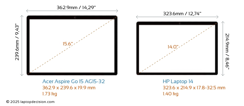 HDMIどちらの Aspire Go 15 AG15-32 と Laptop 14 も HDMI ポートを備えています。 Aspire Go 15 AG15-32 は 1x HDMI 2.1 を提供し、 Laptop 14 は 1x HDMI 1.4 を提供します。