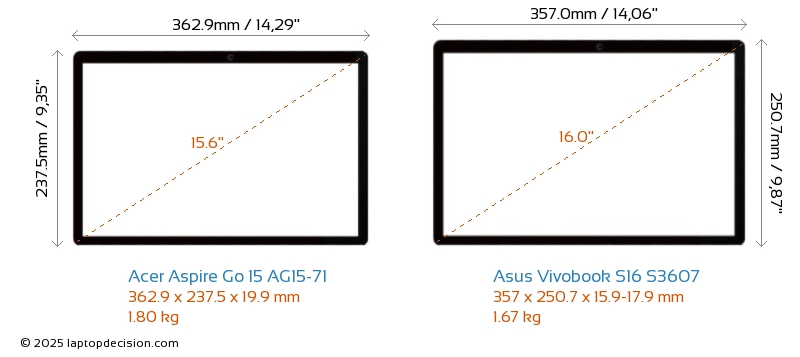 HDMI両方の Aspire Go 15 AG15-71 と Vivobook S16 S3607 は、外部モニターに接続するための HDMI ポート (1x HDMI 2.1) を備えています。