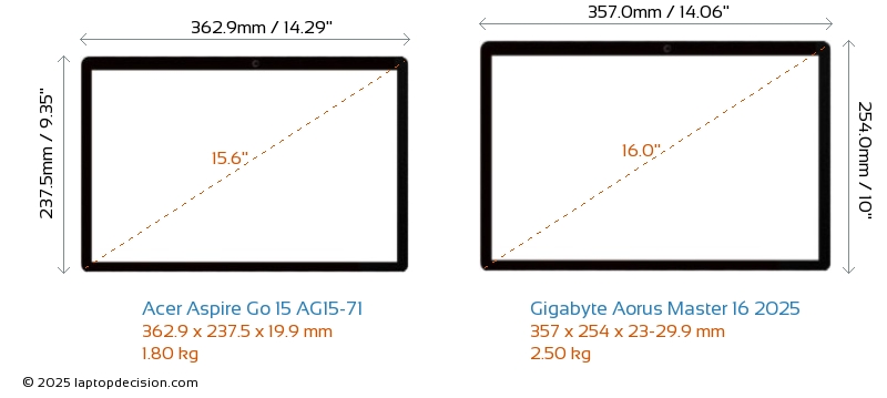 Wifi Aorus Master 16 2025 はより高度な Wi-Fi 規格 v7 を備え、 Aspire Go 15 AG15-71 (v6) と比べて、より高速で信頼性の高いワイヤレス接続を提供します。