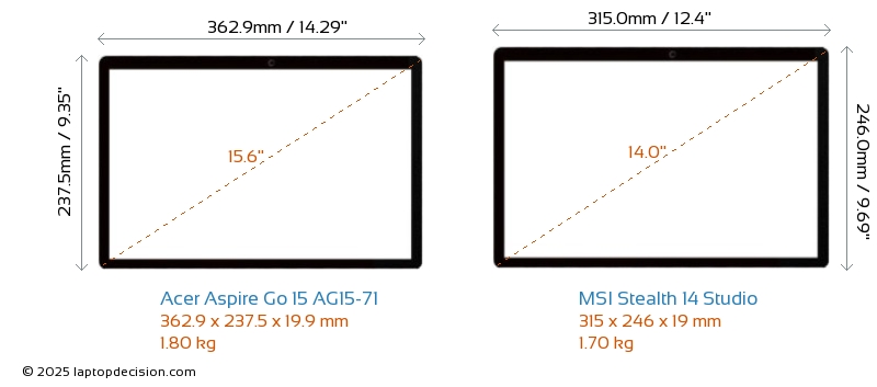 Thunderbolt Stealth 14 Studio は、Thunderbolt 4 ポートを備えています。 Aspire Go 15 AG15-71 には Thunderbolt ポートがありません。