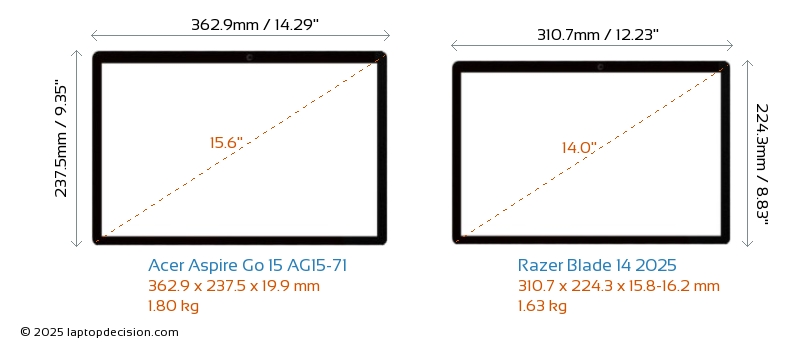 Wifi Blade 14 2025 はより高度な Wi-Fi 規格 v7 を備え、 Aspire Go 15 AG15-71 (v6) と比べて、より高速で信頼性の高いワイヤレス接続を提供します。