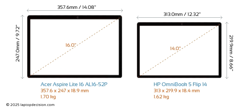 USB両方の Aspire Lite 16 AL16-52P と OmniBook 5 Flip 14 は、USB-A ポートを備えています。 Aspire Lite 16 AL16-52P は 3x USB 3.2 USB-A ポートを持ち、 OmniBook 5 Flip 14 は 2x USB 3.2 USB-A ポートを持っています。両方の Aspire Lite 16 AL16-52P と OmniBook 5 Flip 14 は、USB Type-C ポートを備えています。 Aspire Lite 16 AL16-52P は 1x USB 3.2 USB Type-C ポートを持ち、 OmniBook 5 Flip 14 は 2x USB 3.2 USB Type-C ポートを持っています。
