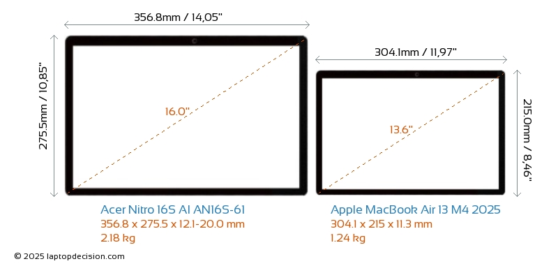 HDMI Nitro 16S AI AN16S-61 は、外部モニターに接続するための HDMI ポート (1x HDMI 2.1) を備えています。 MacBook Air 13 M4 2025 には HDMI ポートがありません。