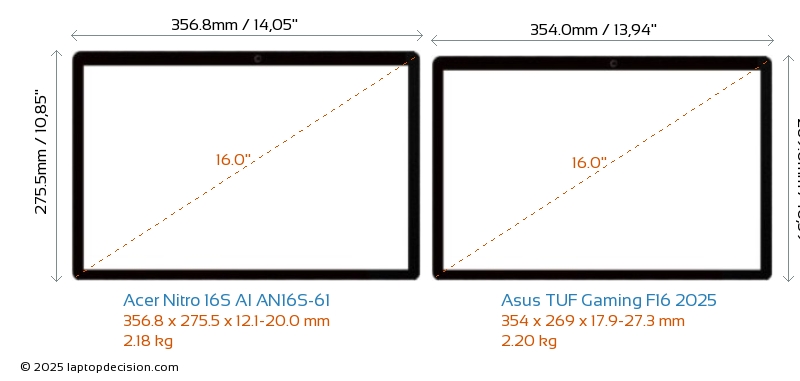 Thunderbolt TUF Gaming F16 2025 は、Thunderbolt 4 ポートを備えています。 Nitro 16S AI AN16S-61 には Thunderbolt ポートがありません。