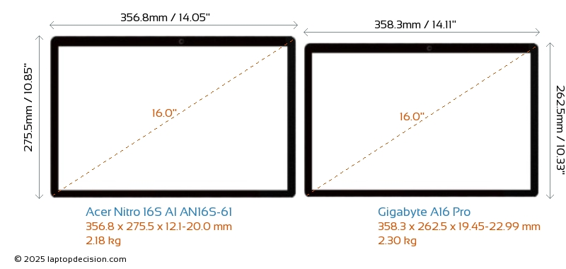 HDMI両方の Nitro 16S AI AN16S-61 と A16 Pro は、外部モニターに接続するための HDMI ポート (1x HDMI 2.1) を備えています。