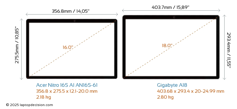 HDMI両方の Nitro 16S AI AN16S-61 と A18 は、外部モニターに接続するための HDMI ポート (1x HDMI 2.1) を備えています。