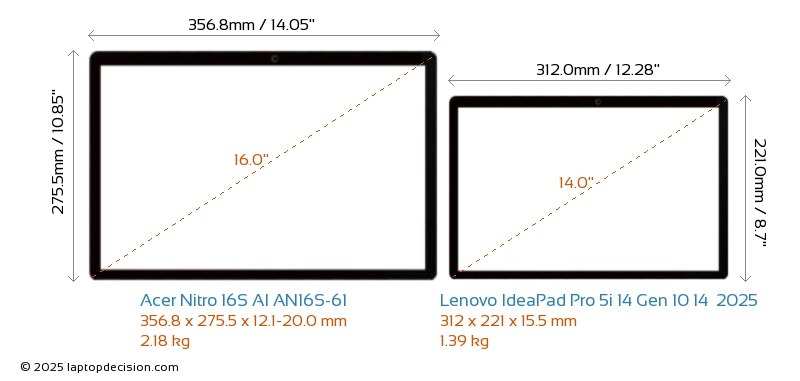 HDMI両方の Nitro 16S AI AN16S-61 と IdeaPad Pro 5i 14 Gen 10 14 2025 は、外部モニターに接続するための HDMI ポート (1x HDMI 2.1) を備えています。