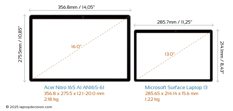 Wifi Surface Laptop 13 はより高度な Wi-Fi 規格 v7 を備え、 Nitro 16S AI AN16S-61 (v6E) と比べて、より高速で信頼性の高いワイヤレス接続を提供します。