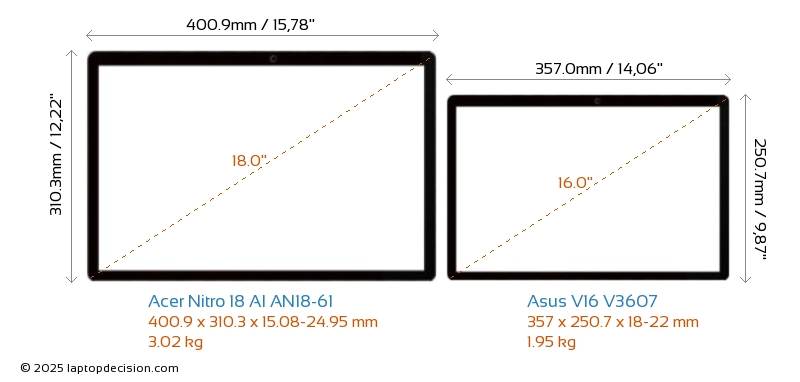 HDMI両方の Nitro 18 AI AN18-61 と V16 V3607 は、外部モニターに接続するための HDMI ポート (1x HDMI 2.1) を備えています。