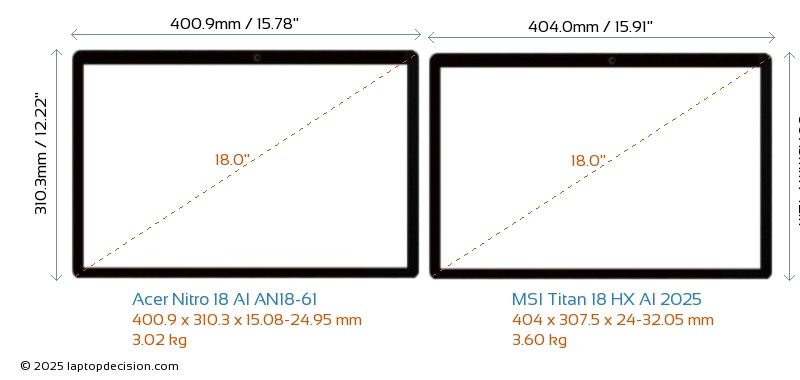 Wifi Titan 18 HX AI 2025 はより高度な Wi-Fi 規格 v7 を備え、 Nitro 18 AI AN18-61 (v6E) と比べて、より高速で信頼性の高いワイヤレス接続を提供します。