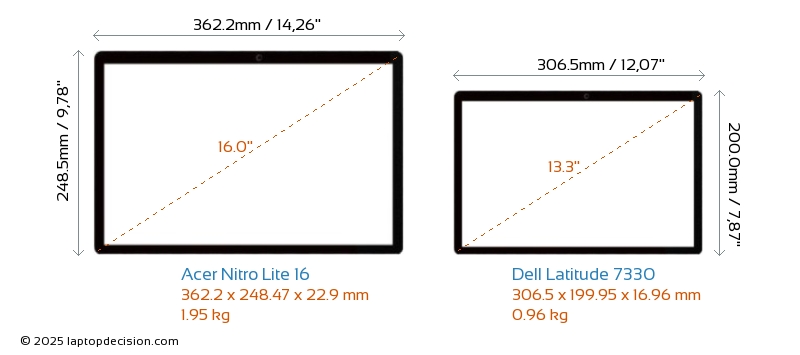 HDMIどちらの Nitro Lite 16 と Latitude 7330 も HDMI ポートを備えています。 Nitro Lite 16 は 1x HDMI 2.1 を提供し、Latitude 7330 は 1x HDMI 2.0 を提供します。