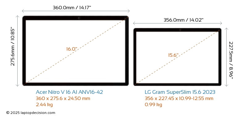 HDMI Nitro V 16 AI ANV16-42 は、外部モニターに接続するための HDMI ポート (1x HDMI 2.1) を備えています。 Gram SuperSlim 15.6 2023 には HDMI ポートがありません。