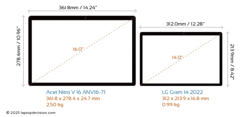 Wifi Gram 14 2022 はより高度な Wi-Fi 規格 v6E を備え、 Nitro V 16 ANV16-71 (v6) と比べて、より高速で信頼性の高いワイヤレス接続を提供します。