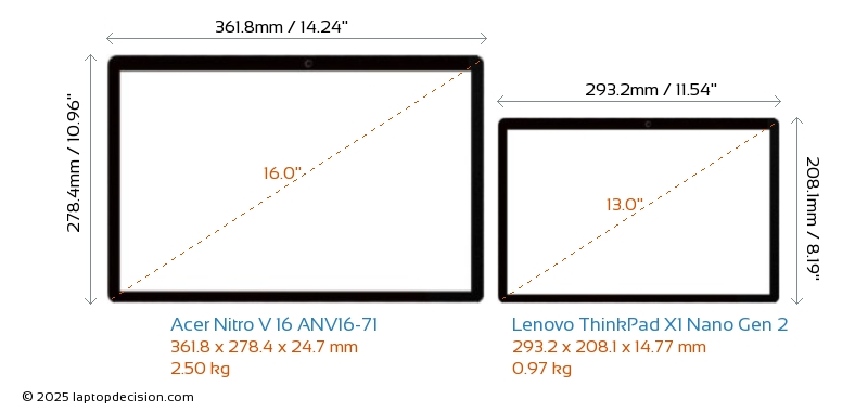 HDMI Nitro V 16 ANV16-71 は、外部モニターに接続するための HDMI ポート (1x HDMI 2.1) を備えています。 ThinkPad X1 Nano Gen 2 には HDMI ポートがありません。