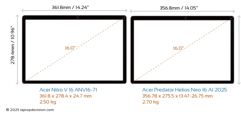 HDMI両方の Nitro V 16 ANV16-71 と Predator Helios Neo 16 AI 2025 は、外部モニターに接続するための HDMI ポート (1x HDMI 2.1) を備えています。