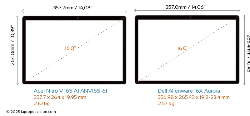 Thunderbolt Alienware 16X Aurora は、Thunderbolt 4 ポートを備えています。 Nitro V 16S AI ANV16S-61 には Thunderbolt ポートがありません。