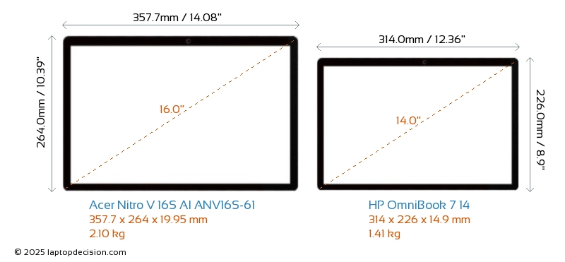 HDMI両方の Nitro V 16S AI ANV16S-61 と OmniBook 7 14 は、外部モニターに接続するための HDMI ポート (1x HDMI 2.1) を備えています。