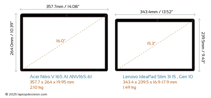HDMIどちらの Nitro V 16S AI ANV16S-61 と IdeaPad Slim 3i 15 , Gen 10 も HDMI ポートを備えています。 Nitro V 16S AI ANV16S-61 は 1x HDMI 2.1 を提供し、 IdeaPad Slim 3i 15 , Gen 10 は 1x HDMI 1.4 を提供します。