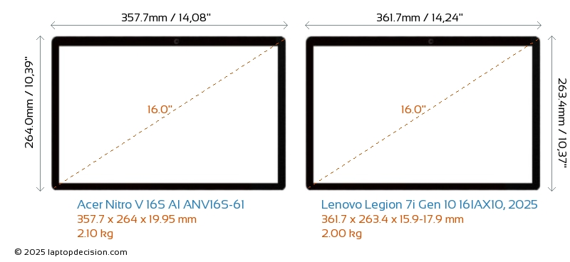 Wifi Legion 7i Gen 10 16IAX10, 2025 はより高度な Wi-Fi 規格 v7 を備え、 Nitro V 16S AI ANV16S-61 (v6E) と比べて、より高速で信頼性の高いワイヤレス接続を提供します。