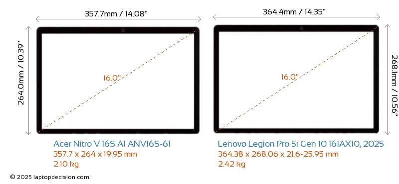 Wifi Legion Pro 5i Gen 10 16IAX10, 2025 はより高度な Wi-Fi 規格 v7 を備え、 Nitro V 16S AI ANV16S-61 (v6E) と比べて、より高速で信頼性の高いワイヤレス接続を提供します。