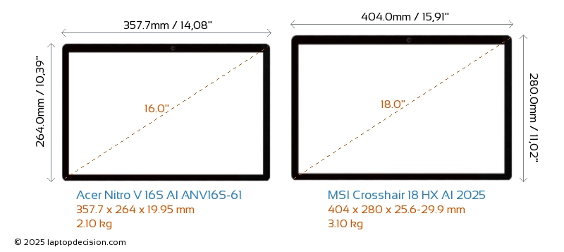 HDMI両方の Nitro V 16S AI ANV16S-61 と Crosshair 18 HX AI 2025 は、外部モニターに接続するための HDMI ポート (1x HDMI 2.1) を備えています。
