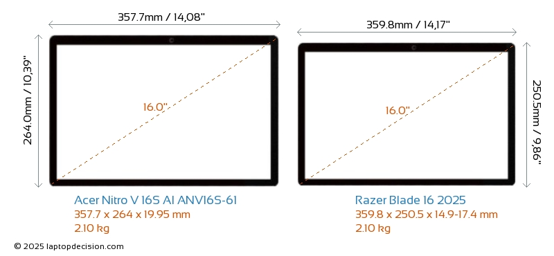 HDMI両方の Nitro V 16S AI ANV16S-61 と Blade 16 2025 は、外部モニターに接続するための HDMI ポート (1x HDMI 2.1) を備えています。