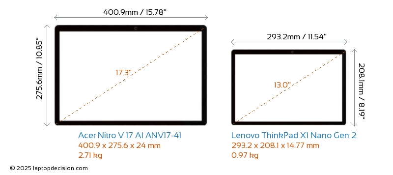 HDMI Nitro V 17 AI ANV17-41 は、外部モニターに接続するための HDMI ポート (1x HDMI 2.1) を備えています。 ThinkPad X1 Nano Gen 2 には HDMI ポートがありません。