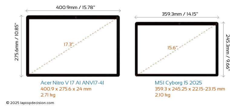 HDMI両方の Nitro V 17 AI ANV17-41 と Cyborg 15 2025 は、外部モニターに接続するための HDMI ポート (1x HDMI 2.1) を備えています。