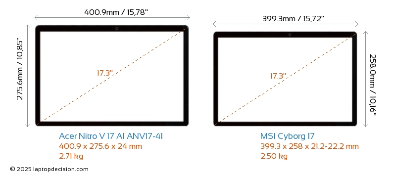 HDMI両方の Nitro V 17 AI ANV17-41 と Cyborg 17 は、外部モニターに接続するための HDMI ポート (1x HDMI 2.1) を備えています。