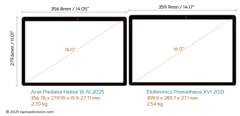 Thunderbolt Predator Helios 16 AI 2025 は、Thunderbolt 5 ポートを備えています。 Prometheus XVI 2021 には Thunderbolt ポートがありません。
