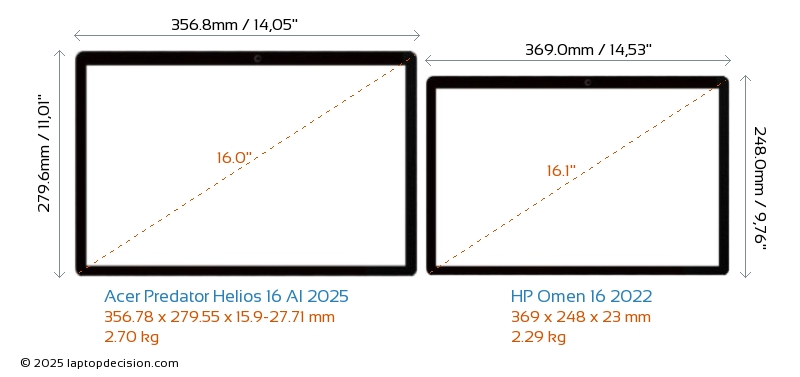 HDMI両方の Predator Helios 16 AI 2025 と Omen 16 2022 は、外部モニターに接続するための HDMI ポート (1x HDMI 2.1) を備えています。