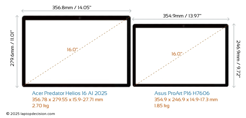 HDMI両方の Predator Helios 16 AI 2025 と ProArt P16 H7606 は、外部モニターに接続するための HDMI ポート (1x HDMI 2.1) を備えています。