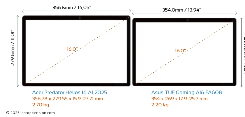 HDMI両方の Predator Helios 16 AI 2025 と TUF Gaming A16 FA608 は、外部モニターに接続するための HDMI ポート (1x HDMI 2.1) を備えています。