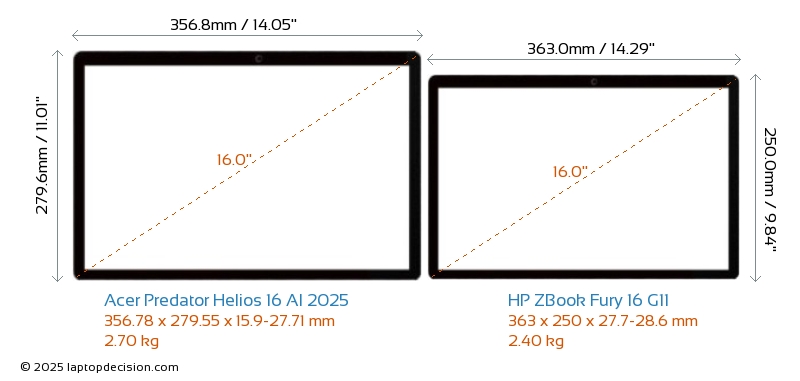 HDMI両方の Predator Helios 16 AI 2025 と ZBook Fury 16 G11 は、外部モニターに接続するための HDMI ポート (1x HDMI 2.1) を備えています。