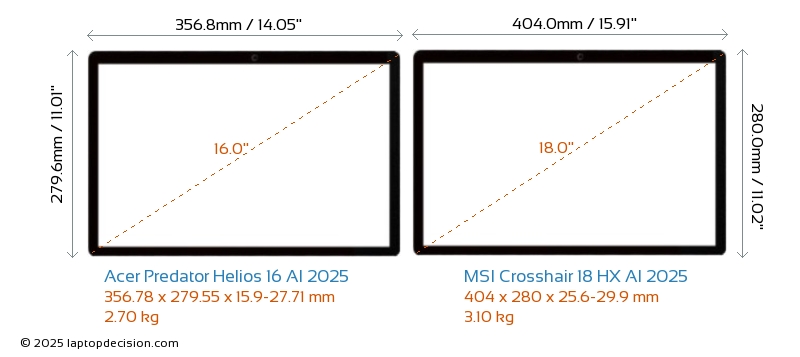 HDMI Crosshair 18 HX AI 2025 は、外部モニターに接続するための HDMI ポート (1x HDMI 2.1) を備えています。 Predator Helios 16 AI (2025) には HDMI ポートがありません。