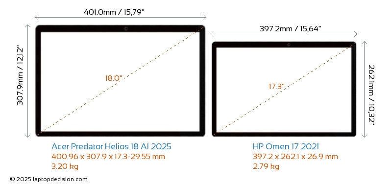 HDMI両方の Predator Helios 18 AI 2025 と Omen 17 2021 は、外部モニターに接続するための HDMI ポート (1x HDMI 2.1) を備えています。