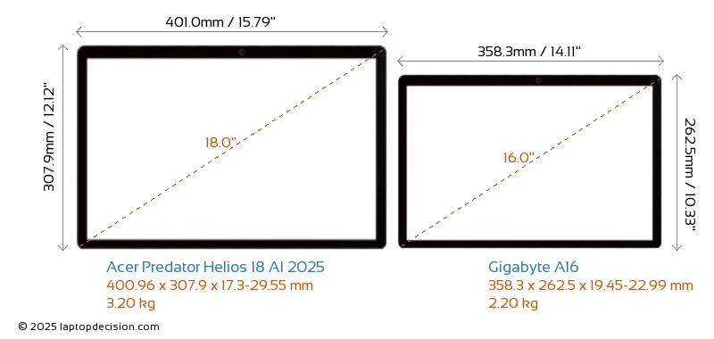 HDMI両方の Predator Helios 18 AI 2025 と A16 は、外部モニターに接続するための HDMI ポート (1x HDMI 2.1) を備えています。