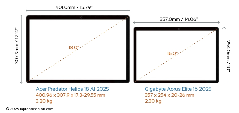 HDMI両方の Predator Helios 18 AI 2025 と Aorus Elite 16 2025 は、外部モニターに接続するための HDMI ポート (1x HDMI 2.1) を備えています。