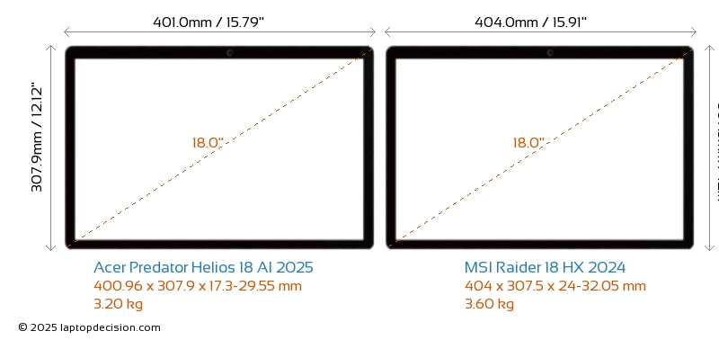 HDMI両方の Predator Helios 18 AI 2025 と Raider 18 HX 2024 は、外部モニターに接続するための HDMI ポート (1x HDMI 2.1) を備えています。