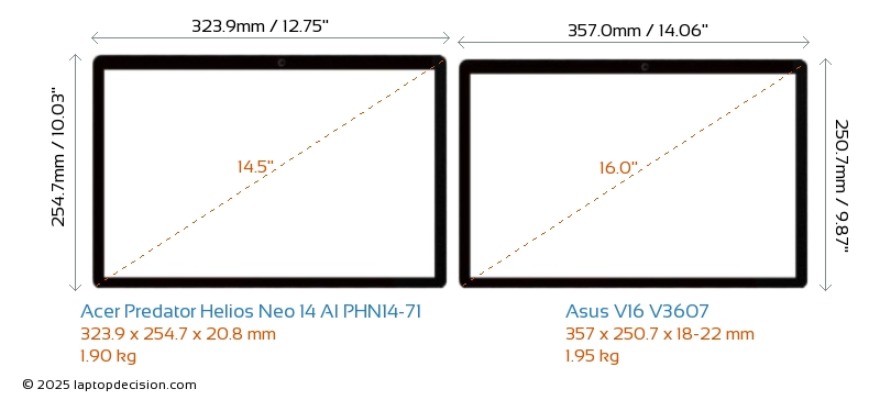 HDMI両方の Predator Helios Neo 14 AI PHN14-71 と V16 V3607 は、外部モニターに接続するための HDMI ポート (1x HDMI 2.1) を備えています。