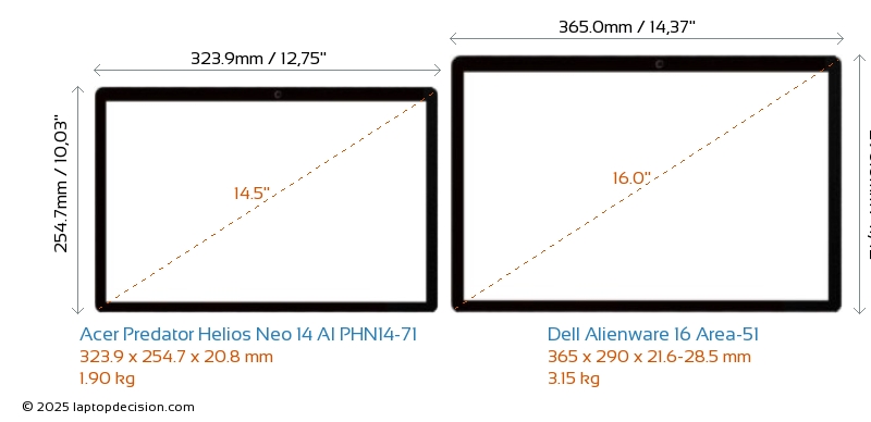 Thunderbolt両方の Predator Helios Neo 14 AI PHN14-71 と Alienware 16 Area-51 は Thunderbolt ポートを備えています。 Predator Helios Neo 14 AI PHN14-71 は Thunderbolt 4 を持ち、 Alienware 16 Area-51 は Thunderbolt 5 を持っています。