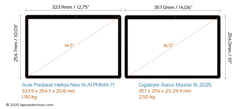 HDMI両方の Predator Helios Neo 14 AI PHN14-71 と Aorus Master 16 2025 は、外部モニターに接続するための HDMI ポート (1x HDMI 2.1) を備えています。