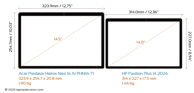 HDMI両方の Predator Helios Neo 14 AI PHN14-71 と Pavilion Plus 14 2024 は、外部モニターに接続するための HDMI ポート (1x HDMI 2.1) を備えています。