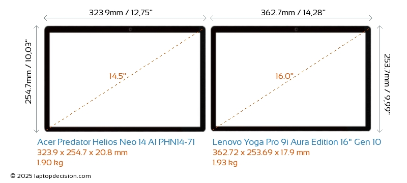 HDMI両方の Predator Helios Neo 14 AI PHN14-71 と Yoga Pro 9i Aura Edition 16" Gen 10 は、外部モニターに接続するための HDMI ポート (1x HDMI 2.1) を備えています。